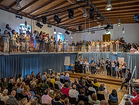 Die Akademieleiter Dr. Peter Gorzolla und Dr. Cynthia Hog-Angeloni dankten den zahlreichen Gästen und blickten stolz auf die Erfolge der vergangenen Jahre zurück. „Hätte mir jemand damals zur Gründung gesagt, dass ich zum Jubiläum wieder in der Burg stehen würde, hätte ich gesagt: ‚Ja, klar‘“, so Hog-Angeloni. Für die Burg Fürsteneck als Träger betonten Programmbereichsleiter Matthias Feuerstein und Geschäftsführer Hartmut Piekatz die langjährige Unterstützung der Familien und Sponsoren sowie die hervorragende Zusammenarbeit der Teams. „Ihr macht die Burg Fürsteneck zu einem besonderen Ort, und das hoffentlich auch noch viele weitere Jahre“, betonte Piekatz.