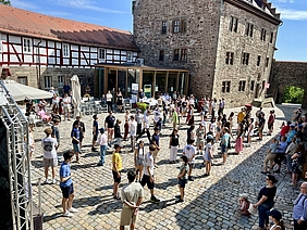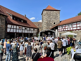 Auch im Jubiläumsjahr konnten zu Beginn und am Ende der hessischen Sommerferien jeweils 80 Teilnehmende erfolgreich in den beiden Projekten begrüßt werden. „Der Burgspirit hat einfach etwas Unglaubliches an sich, weswegen ich bereits dreimal an der Akademie teilgenommen habe!“, so Simon. Besonders die Gästetage, zu denen Eltern, Freunde und Netzwerkpartner eingeladen waren, boten die Gelegenheit, die begeisternde Atmosphäre der Schülerakademien hautnah zu erleben. Dr. Claudia Wulff, Kuratoriumsvorsitzende der Akademien, sprach zu den Besuchern: „Wir wollten dieses Jahr bei unserem Gästetag etwas anders machen. Weniger Werkschau und mehr Beteiligung an unserem kreativen Programm.“ Die Veranstaltung ermöglichte es den Gästen, Kurse wie „Kosmologie“ oder „Mathematik und Origami“ näher kennenzulernen, und bot ein buntes Bühnenprogramm sowie eine gemeinsame Chorprobe.