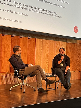 In ihrem Workshop „Fake oder Fakt? - KI, Social Media und die Macht der Manipulation“ haben sie einen Praxisimpuls für Schülerinnen und Schüler gezeigt, der über die Techniken, Gefahren und Auswirkungen von Desinformation informierte.