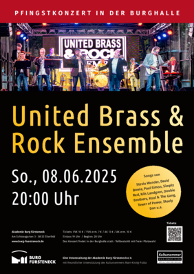 Funk, Soul und Brassrock vom Feinsten: Das United Brass & Rock Ensemble zeigte beim traditionellen Pfingstkonzert auf Burg Fürsteneck, wie kraftvoll handgemachte Musik klingen kann. Schon das eröffnende „Squib Cakes“ von Tower of Power ließ keinen Zweifel – dieser Abend würde tanzbar.