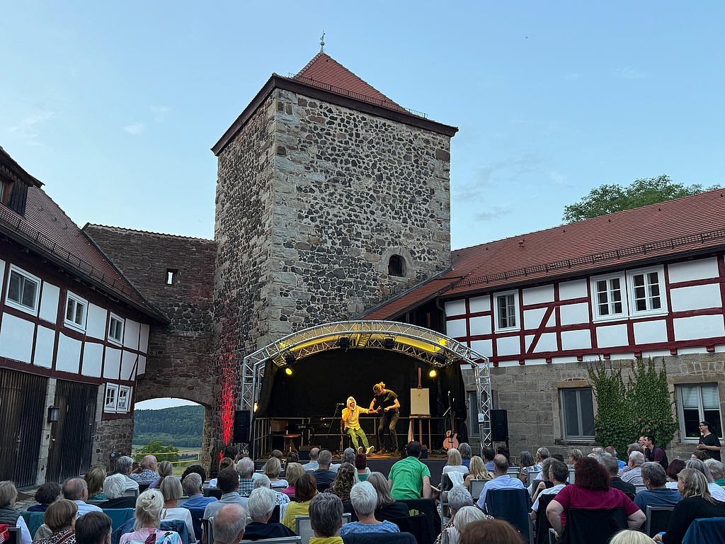 Kabarett ist längst mehr als politischer Witz mit Zeigefinger – das bewies die Kabarettnacht auf Burg Fürsteneck eindrucksvoll. Mehr als zwei Stunden lang boten Teilnehmende der diesjährigen Kabarettakademie ein abwechslungsreiches Potpourri aus Satire, Comedy, Musik und Performance. Vom Solo bis zur absurden Rollator-Improvisation reichte das Spektrum – und gerade diese Vielfalt begeisterte das Publikum.
