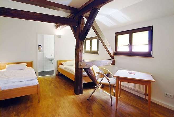 Unsere Doppelzimmer sind ebenfalls hell und freundlich eingerichtet. Auch hier haben Sie einen herrlichen Blick in die Landschaft oder auf das Burggelände. Möbel und Fußboden sind aus hellem Holz, geölt und gewachst.