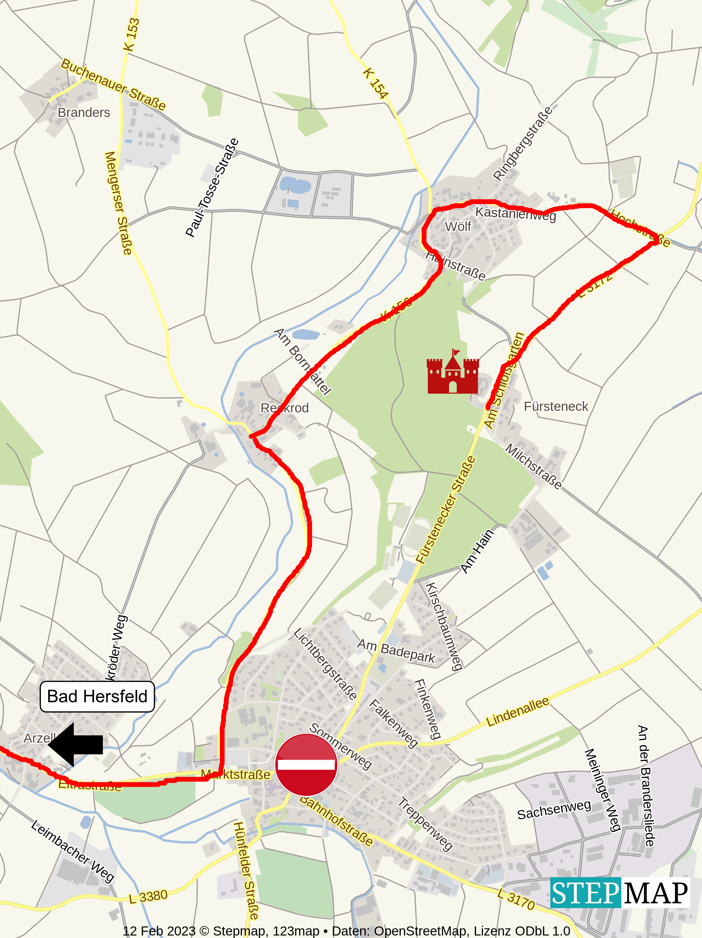 Bis voraussichtlich Oktober 2026 wird der Verkehr hier großräumig umgeleitet. Wir empfehlen nach der “Star-Tankstelle” am Ortseingang Eiterfeld links abzubiegen zum Ort Reckrod (abweichend von der offiziellen Umleitungsbeschilderung (Umweg), welcher Sie aber natürlich auch folgen können). Dann durch Reckrod nach Wölf fahren (in der Ortsmitte von Reckrod rechts abbiegen nach Wölf), durch den Ort Wölf Richtung Oberweisenborn fahren, nach der Ortslage Wölf an der Kreuzung hinter dem Sportplatz rechts hoch Richtung Fürsteneck fahren. Dann fahren Sie direkt auf die Burg zu. KARTENANSICHT